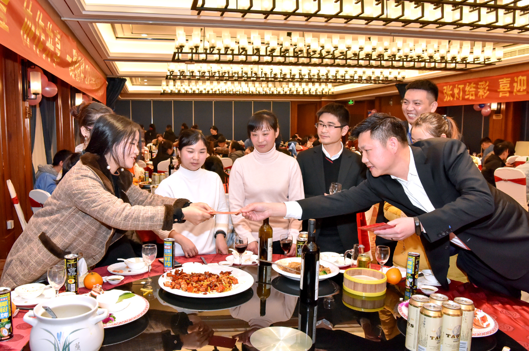 在晚宴進行時,公司領導帶領管理人員向每位員工進行新年祝酒,同時向員工們派發新年紅包。參加晚宴的員工表示,非常感謝公司領導給予的肯定,未來也將與公司共同前行,再創佳績。